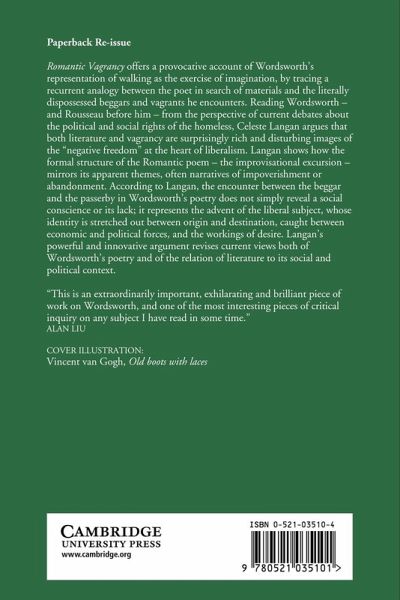 Romantic Vagrancy offers a provocative account of Wordsworth's representation of walking as the exercise of imagination, by tracing a recurrent analogy between the poet in search of materials and the literally dispossessed beggars and vagrants he encounters. Reading Wordsworth - and Rousseau before him - from the perspective of current debates about the political and social rights of the homeless, Celeste Langan argues that both literature and vagrancy are surprisingly rich and disturbing images of the "negative freedom" at the heart of liberalism. Langan shows how the formal structure of the Romantic poem - the improvisational excursion - mirrors its apparent themes, often narratives of impoverishment of abandonment. According to Langan, the encounter between the beggar and the passerby in Wordsworth's poetry does not simply reveal a social conscience or its lack; it represents the advent of the liberal subject, whose identity is stretched out between origin and destination, caught between economic and political forces, and the workings of desire. Langan's powerful and innovative argument revises current views both of Wordsworth's poetry and of the relation of literature to its social and political context.