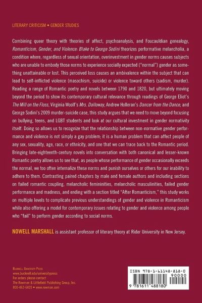 Introduction Gender Normativity, Failure, and Violence from Romanticism to George Sodini Section One: Romantic Coupling, Failure, and Melancholia Social Bond(age)s in Visions of the Daughters of Albion Rethinking Burney, Gender, and Violence: Camilla and the Masochistic Contract Section Two: Melancholic Femininities "Corrupt Nature": Performative Melancholia and Violence in Zofloya Siren Songs: Maggie Tulliver, Music, and Performative Melancholia in The Mill on the Floss Section Three: Melancholic Masculinities Monstrosity and Failed Masculinity in The Giaour Competition and Melancholic Masculinity in Caleb Williams Section Four: Abandonment, Performative Melancholia, and Madness Performative Melancholia and the Gothic Body in Wordsworth and Shelley Amelia Opie's The Father and Daughter: Female Masochism and Male Madness Section Five: After Romanticism Refusing Butler's Binary: Bisexuality and Performative Melancholia in Mrs. Dalloway Heternormativity and Performative Melancholia in Dancer from the Dance