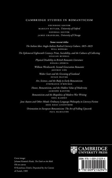 Introduction 1. 'Not / a pastoral fable': republicanism, liberalism, and the Swiss myth 2. Comparative republicanisms: the Swiss myth in eighteenth-century Britain 3. Revising republicanism: revolutionary-period travel writing on Switzerland 4. Switzerland no more: 1798 and the romantic imagination 5. Switzerland in miniature: Wordsworth's 'visionary mountain republic' 6. Restoration republicanism: the Swiss myth after 1815 Coda: John Ruskin's Switzerland Notes Bibliography Index.