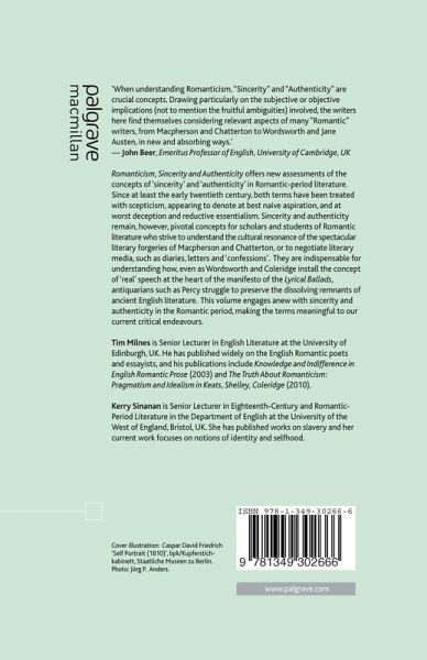 'When understanding Romanticism, 'Sincerity' and 'Authenticity ' are crucial concepts. Drawing particularly on the subjective or objective implications (not to mention the fruitful ambiguities) involved, the writers here find themselves considering relevant aspects of many 'Romantic' writers, from Macpherson and Chatterton to Wordsworth and Jane Austen, in new and absorbing ways.'
