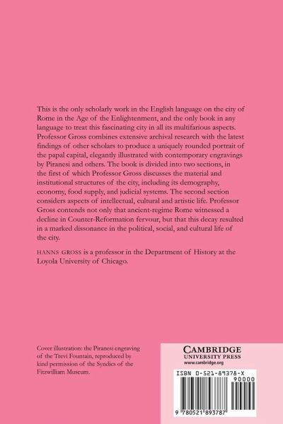 This is the only scholarly work in the English language on the city of Rome in the Age of the Enlightenment, and the only book in any language to treat this fascinating city in all its multifarious aspects. Professor Gross combines extensive archival research with the latest findings of other scholars to produce a uniquely rounded portrait of the papal capital, elegantly illustrated with contemporary engravings by Piranesi and others. The book is divided into two sections, in the first of which Professor Gross discusses the material and institutional structures of the city, including its demography, economy, food supply, and judicial systems. The second section considers aspects of intellectual, cultural, and artistic life. Professor Gross contends not only that ancien-regime Rome witnessed a decline in Counter-Reformation fervour, but that this decay resulted in a marked dissonance in the political, social, and cultural life of the city.