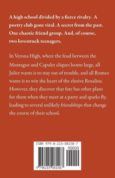 A high school divided by a fierce rivalry. A poetry club gone viral. A secret from the past. One chaotic friend group. And, of course, two lovestruck teenagers. In Verona High, where the feud between the Montague and Capulet cliques looms large, all Juliet wants is to stay out of trouble, and all Romeo wants is to win the heart of the elusive Rosaline. However, they discover that fate has other plans for them when they meet at a party and sparks fly, leading to several unlikely friendships that change the course of their school.