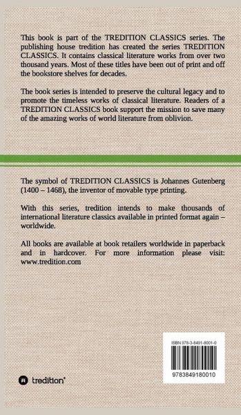 This book (hardcover) is part of the TREDITION CLASSICS. It contains classical literature works from over two thousand years. Most of these titles have been out of print and off the bookstore shelves for decades. The book series is intended to preserve the cultural legacy and to promote the timeless works of classical literature. Readers of a TREDITION CLASSICS book support the mission to save many of the amazing works of world literature from oblivion. With this series, tredition intends to make thousands of international literature classics available in printed format again worldwide.