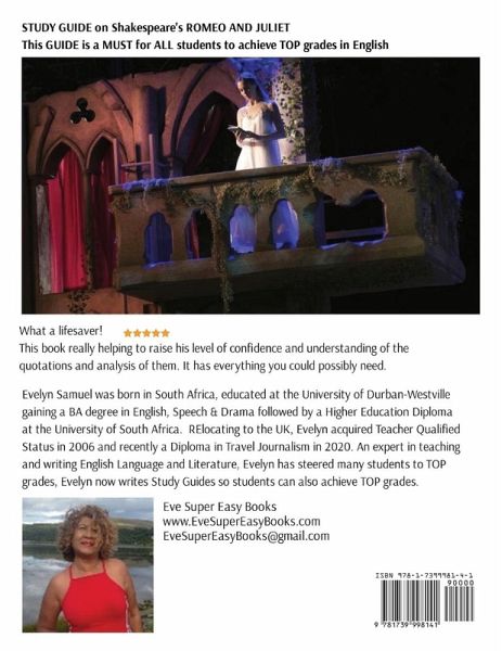 STUDY GUIDE on Shakespeare's ROMEO AND JULIETThis GUIDE is a MUST for ALL students to achieve TOP grades in English LITERATURE NEW unique Literature Study Guide Made Super Super Easy on Shakespeare's renowned play Romeo and Juliet. Its unique structure with detailed explanations next to the text, Characters, Themes, Exam questions will ensure TOP grades.
