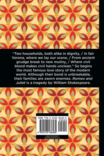 LARGE PRINT EDITION . Romeo and Juliet (1597) is a tragedy by William Shakespeare. Inspired by an Italian tale adapted for an English audience in 1562 by Arthur Brooke and in 1567 by William Painter, Shakespeare wrote Romeo and Juliet sometime between 1591 and 1595. Alongside Hamlet, it is one of Shakespeare's most performed plays and has served as source material for countless film and television adaptations. "Two households, both alike in dignity, / In fair Verona, where we lay our scene, / From ancient grudge break to new mutiny, / Where civil blood makes civil hands unclean." For his wit and wordplay alone, William Shakespeare is often considered the greatest writer to ever work in the English language. Where he truly triumphs, however, is in his ability to portray complex human emotions, how these emotions contribute to relationships, and how these relationships interact with politics, culture, and religion. In Romeo and Juliet, a "pair of star-cross'd lovers" risk their lives for one another. Because Romeo is a Montague, he cannot love Juliet, a Capulet, the sworn enemies of his family and their major rival in the city of Verona. As is often the case, their hearts refuse the limits of history, leading them to their tragic, unforgettable end. This edition of William Shakespeare's Romeo and Juliet is a classic of English literature reimagined for modern readers. Since our inception in 2020, Mint Editions has kept sustainability and innovation at the forefront of our mission. Each and every Mint Edition title gets a fresh, professionally typeset manuscript and a dazzling new cover, all while maintaining the integrity of the original book. With thousands of titles in our collection, we aim to spotlight diverse public domain works to help them find modern audiences. Mint Editions celebrates a breadth of literary works, curated from both canonical and overlooked classics from writers around the globe.