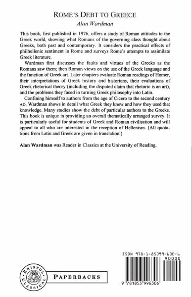 This book offers a study of Roman attitudes to the Greek world, showing what Romans of the governing class thought about Greeks, both past and contemporary. It considers the practical effects of Philhellenism in Rome and surveys Rome's attempts to assimilate Greek literature. Wardman discusses the faults and virtues of the Greeks through Roman eyes; Roman views on use of the Greek language and Greek art; Roman readings of Homer; interpretations of Greek history and historians; evaluations of Greek rhetorical theory; and the problems they faced in turning Greek philosophy into Latin. The book ranges from the age of Cicero to the second century AD and provides an overall, thematically arranged survey. It is designed to be useful to all students of Greek and Roman civilisation and appeal to all who are interested in the reception of Hellenism. Quotations are in translation, so it is readily accessible to those who do not read the ancient languages.