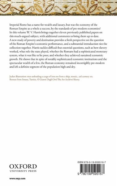 An assessment of the economic success of Imperial Rome, consisting of eleven previously published papers by the historian W. V. Harris, with additional comments to bring them up to date. Harris also includes a new study of poverty and destitution, and a substantial introduction which ties the collection together.