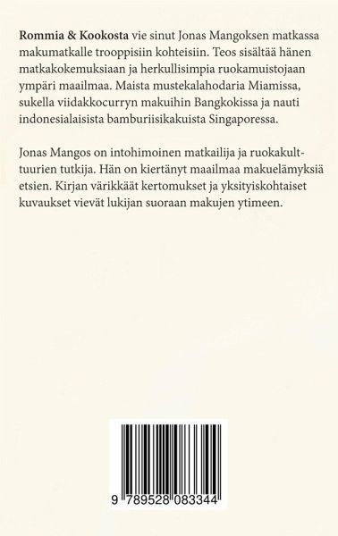 Rommia & Kookosta vie lukijan makumatkalle trooppisiin kohteisiin. Kirja kuvaa kirjailijan matkakokemuksiaan ja herkullisimpia ruokamuistojaan ympäri maailmaa. Matkakertomukset toimivat hyvänä johdantona trooppisten maiden ruokiin ja juomiin. Kirjan värikkäät kertomukset ja yksityiskohtaiset kuvaukset vievät lukijan suoraan makujen ytimeen.