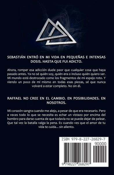 Sebastián entró en mi vida en pequeñas e intensas dosis. Hasta que fui adicto. Ahora, romper esa adicción duele peor que cualquier cosa que haya pasado antes. Ya no sé quién soy, quién era o incluso quién quiero ser. Mi mundo está destrozado como los fragmentos de mi espejo roto. Y viendo un poco de mí mismo en todas esas piezas, sé que nunca volveré a estar completo. No sin él. Raffael no cree en el cambio. En posibilidades. En nosotros. Mi corazón sangra cuando me alejo, a pesar de que era necesario. Pero a veces todo lo que se necesita es echar un vistazo por encima del hombro para darse cuenta de que todavía no se puede dejar de pelear. Que tal vez la batalla valga la pena. Es cuando ves que el amor de tu vida te cuida... sin aliento.