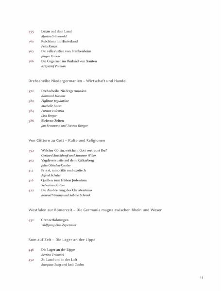 Auf all diese Fragen und viele mehr gibt der Begleitband zur Archäologischen Landesausstellung Nordrhein-Westfalen Antworten. In 86 reich bebilderten Beiträgen bündelt er die aktuellen archäologischen Erkenntnisse, die fünf unterschiedliche Ausstellungen zu »Roms fließenden Grenzen« an fünf Museums-Standorten - Bonn, Xanten, Köln, Haltern am See und Detmold - beleuchten.