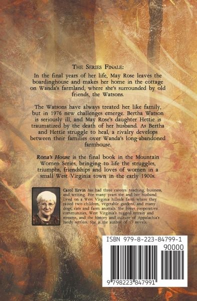 The Series Finale In the final years of her life, May Rose leaves the boardinghouse and makes her home in the cottage on Wanda's farmland, where she's surrounded by old friends, the Watsons. They've always treated her like family, but in 1976 new challenges emerge. Bertha Watson is seriously ill, and May Rose's daughter Hettie is traumatized by the death of her husband. As Bertha and Hettie struggle to heal, a rivalry develops between their families over Wanda's long-abandoned farmhouse. Rona's House is the final book in the Mountain Women Series, bringing to life the struggles, triumphs, friendships and loves of women in a small West Virginia town in the early 1900s. ----------------------------------------------------------------- READERS ARE CAPTIVATED BY THE MOUNTAIN WOMEN SERIES: FIVE STARS: "These books tell of lasting friendships, great loves, and family loyalty. I enjoyed learning some history of mill towns and coal mines in the isolated mill towns and coal towns; the closeness of the communities even though life was difficult. If you read these books, you won't be disappointed. Ms Ervin is a great story teller!" -Goodreads Reviewer FIVE STARS: "Best series I've read in a very long time." -Goodreads Reviewer