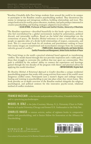 Acknowledgements Foreword. Address of His Holiness Pope Francis to the Rondine Association ( Pope Francis) Introduction. On the Love of God and Our Enemies: Hospitality and The Rondine Method (Miguel H. Diaz) Part 1. The Rondine Method (Franco Vaccari) Chapter 1. The Steps Toward Trust Chapter 2. The Other Person in the Relationship Chapter 3. The Heart of the Rondine Method: The Relational Approach to Conflict Chapter 4. Putting the Relational Model to the Test Chapter 5. Some Final Thoughts and Next Steps Part 2. Responses to the Rondine Method Chapter 6. Rondine Cittadella Della Pace: An Open-Air Laboratory About Intergroup Conflict and Intergroup Contact Theory (Pagani, Ariela, Bertoni, Anna, Garuglieri, A., & Iafrate, Raffaella) Chapter 7. The Rondine Method and the Three Ds (Michael David Kaiser) Chapter 8. Rondine Method and Creative Conflict Transformation: Insights From Contact Theory and Interreligious Peacebuilding (Gerard Powers) Chapter 9. The Rondine Method: Building Peace through Compassion (Daniel Rothbart and Susan Allen) Conclusion. Today Rondine, Tomorrow the World (Charles Hauss) Bibliography About the Contributors Index