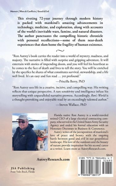 Florida native Ron Autrey is a world-traveled retired CEO of a large electrical contracting company, who served in the United States Army Security Agency and ended his formal education with an Honorary Doctorate in Business & Commerce.Autrey writes of the juxtaposition of mankind's love of peace and beauty with the ongoing battle between good and evil in our geopolitical landscape. His love of the outdoors and the beauty of nature provide inspiration for his second career as a writer. Learn more at AutreyResearch.com.