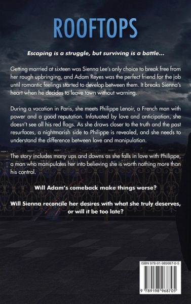 Escaping is a struggle, but surviving is a battle... Getting married at sixteen was Sienna Lee's only choice to break free from her rough upbringing, and Adam Reyes was the perfect friend for the job until romantic feelings started to develop between them. It breaks Sienna's heart when he decides to leave town without warning. During a vacation in Paris, she meets Philippe Lenoir, a French man with power and a good reputation. Infatuated by love and anticipation, she doesn't see all his red flags. As she draws closer to the truth and the past resurfaces, a nightmarish side to Philippe is revealed, and she needs to understand the difference between love and manipulation. The story includes many ups and downs as she falls in love with Philippe, a man who manipulates her into believing she is worth nothing more than his control. Will Adam's comeback make things worse? Will Sienna reconcile her desires with what she truly deserves, or will it be too late?