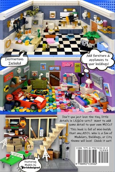 Don't you just love the tiny, little details in LEGO® sets? Want to add some detail inside your own buildings? This book is full of mini-builds that any AFOL who is a fan of Modulars, Buildings, or City themes will love! Build furniture, appliances, lighting, and fixtures to add tons of detail to your interior builds. Instructions are included for over 500 beautiful designs! This book takes you Room By Room and showcases some elegant designs that will easily elevate your MOCs with lots of details. After all, it's All About the Details! LEGO® Mini-builds featuring these topics and rooms: Indoor Lighting & Window Dressings The Foyer Entryway Bench, Coat Rack Console Desk and Table, Hat RacksKitchen & Dining Cabinets & Countertops Tables & Chairs, Hutches & China Cabinets Appliances, Refrigerators, Ovens, Stoves Coffee Makers, Blenders, Mixers, Microwaves, & ToastersBathrooms Vanities and Sinks Showers and Bathtubs ToiletsBedrooms Kids & Bunk Beds, Single & Double Beds, Four Post Beds Nightstands, Dressers Closets and StorageLiving Room Couches & Loveseats, Chaise Lounges, Armchairs Coffee and End Tables Entertainment Centers Televisions & Radios, Clocks Potted Plants FireplacesThe Study Computers, Desks, & Chairs Bars & Credenzas Curio Cabinets & Bookshelves AntiquesLaundry & Utilities Washer and Dryers Ironing Board Vacuum CleanersThe Basement Pool Tables Ping Pong & Foosball Darts & Trophy Case Water Heater, Stuff/JunkThe Garage Workbenches & Shop Tools Sports & Storage Trash Bins Mowers and TractorsThe Backyard Patio Seating, Porch Swing Outdoor Lighting BBQ Grills & Firepits For the Birds Gardening, Greenhouse