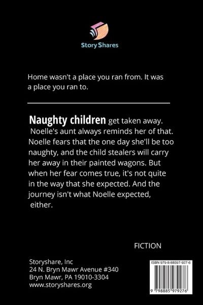 Naughty children get taken away. Noelle's aunt always reminds her of that. Noelle fears that one day she'll be too naughty, and the child stealers will carry her away in their painted wagons. When her fear comes true, it's not quite in the way that she expects, and the journey isn't quite what Noelle expects either.