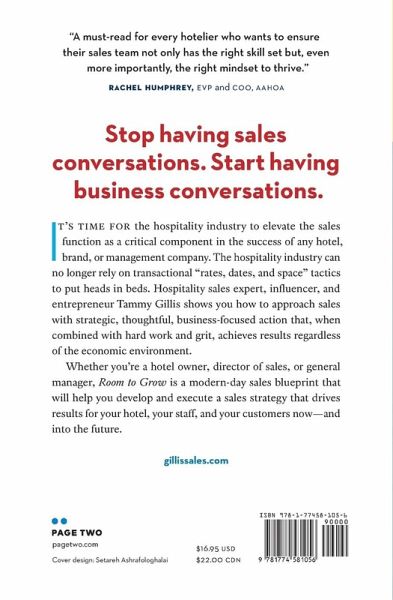 It's time for the hospitality industry to stop talking sales, and start talking business. The hospitality industry has faced more than its fair share of disruption in recent years. No matter how hard you've been hit, your business can do more than just recover-it can prosper. The key lies in taking a modern and strategic approach to sales to unlock new opportunities, better staff retention, and excellent customer service. In Room to Grow, hospitality sales expert, consultant, and entrepreneur Tammy Gillis shows you how to integrate an effective, modern sales strategy across your organization-from the front desk to the back office. Through practical tips, checklists, and real-life examples of what (and what not) to do, Gillis walks you through the steps of implementing new standards and processes to revitalize your business and arm it for future success. You'll learn: How to shift from reactive selling to proactive selling that drive consistency and growth Why you should stop cold calling, and what to do instead Where to look for new business opportunities, and connect what you have to offer with what they need How the front desk can be your most valuable business development tool How to define your strategic objectives and implement an effective and robust business plan How to research leads and uncover key decision makers-and then approach them Whether you're a hotel owner, director of sales, general manager, or in customer service, you're in the hospitality industry because you have a genuine desire to serve and help people. You want to bring travelers together, welcome them as your guests, and deliver great customer experiences to them. With the right sales and marketing approach integrated across your hotel, brand, or experience, you can build a culture that will drive the desired results for your hotel, your staff, and your customers now, and into the future.