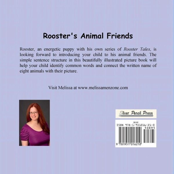 Rooster, an energetic puppy from the Rooster Tales series, is looking forward to introducing children to his animal friends. The simple sentence structure in this beautifully illustrated picture book will help children identify common words and connect eight animal names with their picture.