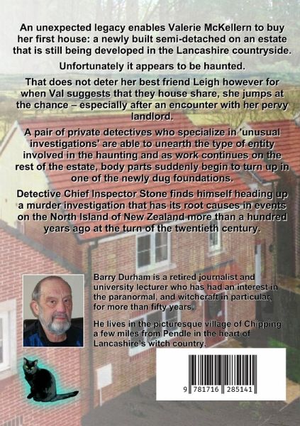 An unexpected legacy enables Valerie McKellern to buy her first house: a newly built semi-detached on an estate that is still being developed in the Lancashire countryside. Unfortunately for Val, it appears to be haunted. That does not deter her best friend Leigh however for when Val asks if she would consider a house share, Leigh jumps at the chance - especially after an encounter with her pervy landlord. After contacting Ratcliffe and Kat, a pair of private detectives who specialize in 'Unusual Investigations', they manage to discover the strange type of entity involved in the haunting. However, as work continues on the rest of the estate, suddenly body parts begin to turn up in one of the newly dug foundations. Detective Chief Inspector Stone finds himself heading up a murder investigation that has its root causes in events on the North Island of New Zealand more than a hundred years ago at the turn of the twentieth century.