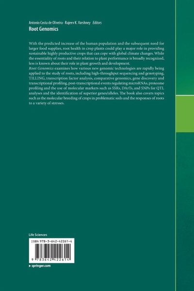 With the predicted increase of the human population and the subsequent need for larger food supplies, root health in crop plants could play a major role in providing sustainable highly productive crops that can cope with global climate changes. While the essentiality of roots and their relation to plant performance is broadly recognized, less is known about their role in plant growth and development. "Root Genomics" examines how various new genomic technologies are rapidly being applied to the study of roots, including high-throughput sequencing and genotyping, TILLING, transcription factor analysis, comparative genomics, gene discovery and transcriptional profiling, post-transcriptional events regulating microRNAs, proteome profiling and the use of molecular markers such as SSRs, DArTs, and SNPs for QTL analyses and the identification of superior genes/alleles. The book also covers topics such as the molecular breeding of crops in problematic soils and the responses of roots to a variety of stresses.