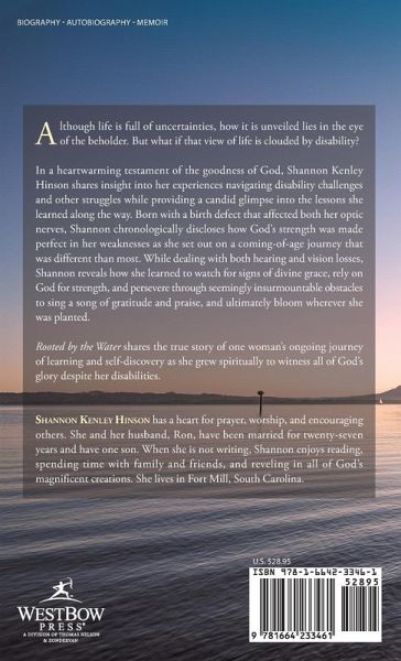 Although life is full of uncertainties, how it is unveiled lies in the eye of the beholder. But what if that view of life is clouded by disability? In a heartwarming testament of the goodness of God, Shannon Kenley Hinson shares insight into her experiences navigating disability challenges and other struggles while providing a candid glimpse into the lessons she learned along the way. Born with a birth defect that affected both her optic nerves, Shannon chronologically discloses how God's strength was made perfect in her weaknesses as she set out on a coming-of-age journey that was different than most. While dealing with both hearing and vision losses, Shannon reveals how she learned to watch for signs of divine grace, rely on God for strength, and persevere through seemingly insurmountable obstacles to sing a song of gratitude and praise, and ultimately bloom wherever she was planted. Rooted by the Water shares the true story of one woman's ongoing journey of learning and self-discovery as she grew spiritually to witness all of God's glory despite her disabilities.