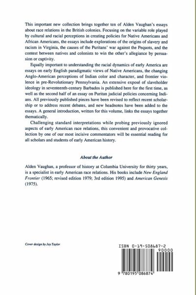 This collection of essays focuses principally on India/White and Black/White relations in colonial America. While the principal concern of the book is on the interaction of culture and races, its more specific focus is on perception and policies, based upon the mental impression whites fashioned to help understand Native Americans and African Americans, and the colonial policies that evolved from these precepts. One section of the book deals specifically with changing European perceptions of Indians and blacks. some of these were base upon false impressions later reversed. Many of them continued to be antagonistic to the two races. A section on "Culture and Race in Early Virginia" deals both with English subjection of the Indians and with later debate over the introduction of slavery into the colony. The final section, titled "Puritans and Indians," deals with Puritan wars against the Pequot Indians, tests of Puritan justice towards Indians, and general development of white-Indian relations in New England from 1605 to 1763. These are a series of provocative essays - some of them revised from published essays, some written specifically for the book - that put race relations in colonial America into a new perspective.