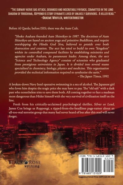 Roppongi is pre-9/11 thriller set in Tokyo, Japan based on an actual terrorist attack that the author witnessed while stationed in Japan with the U.S. Navy.