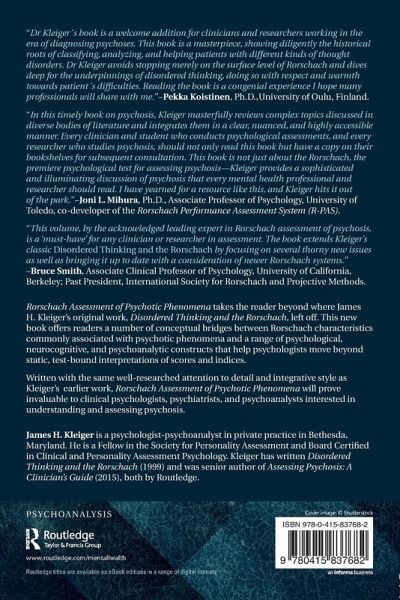 Written with the same well-researched attention to detail and integrative style as Kleiger's earlier work, Rorschach Assessment of Psychotic Phenomena will prove invaluable to clinical psychologists, psychiatrists, and psychoanalysts interested in understanding and assessing psychosis.