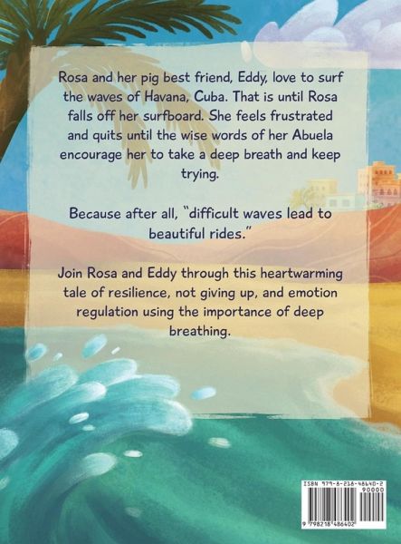 Rosa and her pig best friend, Eddy, love to surf the waves of Havana, Cuba. That is until Rosa falls off her surfboard. She feels frustrated and quits until the wise words of her Abuela encourage her to take a deep breath and keep trying. Because after all, "difficult waves lead to beautiful rides." Join Rosa and Eddy through this heartwarming tale of resilience, not giving up, and emotion regulation using the importance of deep breathing.
