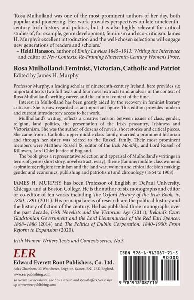 This new work sets six important texts (two full texts and four novel extracts) in the context of Rosa Mulholland's writing career, and the cultural context of the time. Mullholland's writing reflects a creative tension between issues of class, gender, religion, land politics, the presentation of the Irish peasantry, Irishness and Victorianism. Rosa Mulholland was an important figure in late nineteenth-century Irish fiction writing. She was the author of dozens of novels, short stories and critical pieces. She came from a Catholic, upper middle class family, married a prominent historian and through her sister was related to the Russell family. Their most prominent members were Matthew Russell JS, editor of the Irish Monthly, and Lord Russell of Killowen, Lord Chief Justice of England. The book is organised in such a way as to give a representative selection of Mulholland's writings in terms of genre (short story, novel extract, essay), theme (famine; middle-class women's aspirations; religion; feminism and the land war; women and ethical decision making; gender and economics; publishing and patriotism) and chronology (1864 to 1908). Interest in Mulholland has been greatly aided by the recovery in feminist literary criticism. She is now regarded as an important figure and this work provides an introductory access to her work to students and scholars.