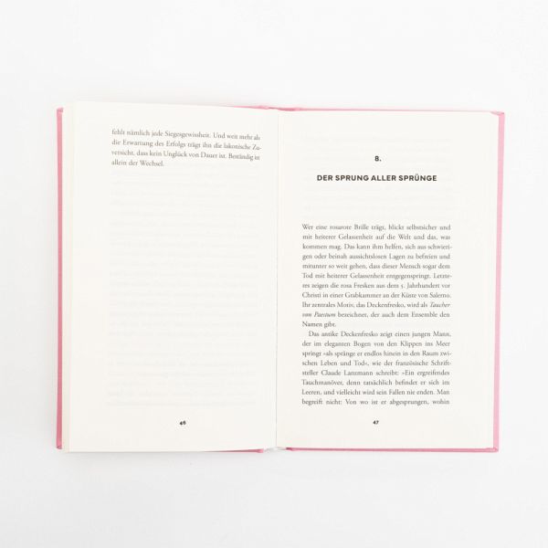 »Qu'est-ce que c'est la vie en rose? Es ist der Unwillen, sich im Gegräu des Lebens einzurichten bei gleichzeitig gesteigertem Bewusstsein, seiner Gravitation doch nicht zu entkommen. Es ist eine sentimentale Rakete, mit der wir kurz in den Himmel fliegen, um von dort aus zurückzublicken - nicht auf die Welt, die wir verlassen haben, sondern auf die, die sie hätte sein können. Dieser Abstand wird vielleicht in keinem Bereich unseres Lebens so spürbar wie in der Liebe, die das (immer schon) verlorene Paradies par excellence ist und die uns gleichwohl immer wieder motiviert, erneut zu starten und uns ungeplant und unrasiert - par hasard et pas rasé, wie es in einem Chanson von Serge Gainsbourg heißt - in ein neues Abenteuer zu stürzen.«