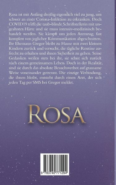 Rosa ist mit Anfang dreißig eigentlich viel zu jung, um schwer an einer Corona-Infektion zu erkranken. Doch COVID19 trifft die taub-blinde Schriftstellerin mit ungeahnter Härte und sie muss intensiv-medizinisch behandelt werden. Sie kämpft um jeden Atemzug, fast komplett von jeglicher Kommunikation abgeschnitten. Ihr Ehemann Gregor bleibt zu Hause mit zwei kleinen Kindern zurück und versucht, die tägliche Routine aufrecht zu erhalten und ihnen Sicherheit zu geben. Seine Gedanken weilen stets bei ihr, sie sehnt sich zurück nach einem gemeinsamen Leben. Doch in der Realität sind sie durch das absolute Besuchsverbot auf grausame Weise voneinander getrennt. Die einzige Verbindung, die ihnen bleibt, entsteht durch einen Arzt, der sich jeden Tag per SMS bei Gregor meldet.