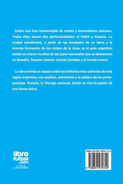 Existe una lista interminable de cracks y entrenadores exitosos. Todos ellos tienen dos particularidades: el fútbol y Rosario. La ciudad santafesina, a partir de las bondades de su tierra y la enorme formación de los clubes de la zona, es el polo argentino donde se criaron muchas de las joyas nacionales que se destacaron en Newell's, Rosario Central, Central Córdoba y el mundo entero. La obra brinda un repaso sobre las historias más salientes de esta región argentina, con análisis, entrevistas y la palabra de los protagonistas. Rosario, la Chicago nacional, donde se vive la pasión de una forma única.