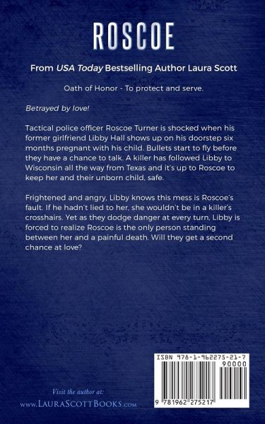 From USA Today Bestselling Author Laura Scott Oath of Honor - To protect and serve! Betrayed by love! Tactical police officer Roscoe Turner is shocked when his former girlfriend Libby Hall shows up on his doorstep six months pregnant with his child. Bullets start to fly before they have a chance to talk. A killer has followed Libby to Wisconsin all the way from Texas and it's up to Roscoe to keep her and their unborn child, safe. Frightened and angry, Libby knows this mess is Roscoe's fault. If he hadn't lied to her, she wouldn't be in a killer's crosshairs. Yet as they dodge danger at every turn, Libby is forced to realize Roscoe is the only person standing between her and a painful death. Will they get a second chance at love?