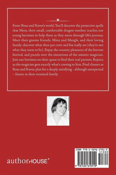 Enter Rose and Raven's world. You'll discover the protective spells that Mem, their small, comfortable dragon-mother, teaches our young heroines to help them as they move through life's journey. Meet their gnome friends, Minx and Murgle, and their loving family; discover what their pet crow and fox really are (they're not what they seem to be). Enjoy the country pleasures of the harvest festival, and puzzle over the intentions of the sinister magician. Join our heroines on their quest to find their real parents. Rejoice as the magician gets exactly what's coming to him. Find closure as Rose and Raven plan for a deeply satisfying - although unexpected - future in their reunited family.