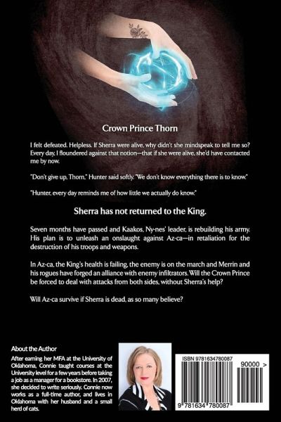 Crown Prince Thorn: I felt defeated. Helpless. If Sherra were alive, why didn't she mindspeak to tell me so? Every day, I floundered against that notion-that if she were alive, she'd have contacted me by now. "Don't give up, Thorn," Hunter said softly. "We don't know everything there is to know." "Hunter, every day reminds me of how little we actually do know." * * * Sherra has not returned to the King. Seven months have passed and Kaakos, Ny-nes' leader, is rebuilding his army. His plan is to unleash an onslaught against Az-ca-in retaliation for the destruction of his troops and weapons. In Az-ca, the King's health is failing, the enemy is on the march and Merrin and his rogues have forged an alliance with enemy infiltrators. Will the Crown Prince be forced to deal with attacks from both sides, without Sherra's help? Will Az-ca survive if Sherra is dead, as so many believe?