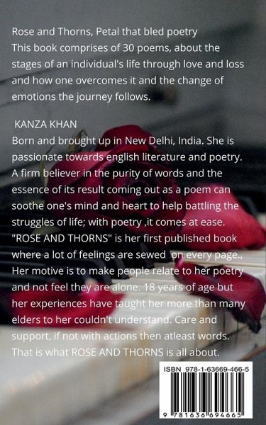 ROSE AND THORNS isn't just any other book of a bunch of poems. It begins with joy when you have someone to love you back, moving on it deals with betrayal and the trauma that follows. In the end the poems portray how one needs to dust off themselves in order to rise again. With more strength and walls built high enough to not be broken easily. Its a journey one survives to finally start living. The 30 poems written inside will be a great partner of this journey.