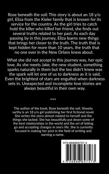 Rose beneath the soil: This story is about an 18 y/o girl, Eliza from the Kieler family that is known for its service for the country. As the girl tries to catch hold the killer who killed her friend, she finds out several truths related to her past. As each day passing by in this journey, Eliza learns new things that brings her closer to the truth. The truth that is kept hidden for more than 10 years, the truth that no one ever in the New Orlans knew about. What she did not accept in this journey was, her epic love. As she meets Jake, the new student, something sparks naturally in them but the teo didn't knew was the spark will let one of us to darkness as it is said, Even the brightest of stars are engulfed when darkness sets in. Unexpected and incomplete love stories are always beautiful in their own way.