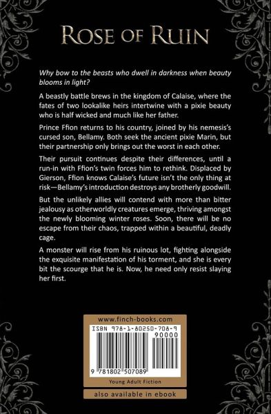 Why bow to the beasts who dwell in darkness when beauty blooms in light? A beastly battle brews in the kingdom of Calaise, where the fates of two lookalike heirs intertwine with a pixie beauty who is half wicked and much like her father. Prince Ffion's return to his country is more than he bargained for when he's joined in his journey by the cursed offspring of his nemesis. Bellamy shares his purpose, with each seeking the ancient pixie Marin's demise even as their collective attributes have them bringing out the worst in one another. Despite their differences, the pair continue their pursuit, only for an unexpected run-in with Ffion's twin to have him rethinking everything. Learning that he's been displaced by his brother Gierson, Ffion knows the future of Calaise may not be the only thing at stake, for when Bellamy is introduced, any goodwill remaining between the brothers disappears. But the unlikely allies will contend with more than bitter jealousy as otherworldly creatures emerge, thriving amongst the newly blooming winter roses. Soon, there will be no escape from their chaos, trapped within a beautiful, deadly cage. A monster will rise from his ruinous lot, fighting alongside the exquisite manifestation of his torment, and she is every bit the scourge that he is. Now, he need only resist slaying her first.
