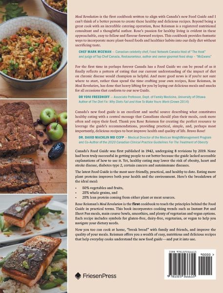 Canada's Food Guide was first published in 1942, undergoing 8 revisions by 2019. None had been truly successful in getting people to eat better because the guide lacked accessible explanations of how to use it. Yet, healthy eating may lower the risk of obesity, heart and stroke disease, diabetes type 2, certain cancers and autoimmune diseases. The latest Food Guide is the most user-friendly, practical, and healthy to date. Eating more plant proteins improves both your health and the environment. Here's the breakdown of the ideal meal: ¿ 50% vegetables and fruits, ¿ 25% whole grains, and ¿ 25% lean protein coming from either plant or meat sources. Rose Reisman's Meal Revolution is the first cookbook to teach the principles behind the Food Guide in practical terms. This book incorporates cooking trends such as Instant Pot and Sheet Pan meals, main course bowls, smoothies, and plenty of vegetarian and vegan options. Each recipe includes symbols for gluten-free, dairy-free, vegetarian, or vegan to help you navigate your dietary needs. Now you too can cook at home, "break bread" with family and friends, and improve the quality of your meals. Reisman offers you a wealth of easy, nutritious and delicious recipes that help everyday cooks understand the new food guide-and put it into use.