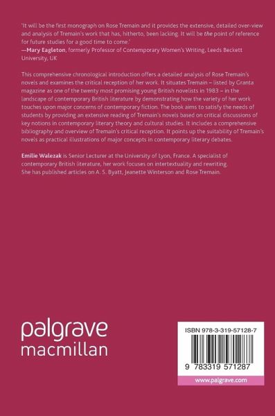 "Emilie Walezak concentrates on compiling a comprehensive and detailed introduction on the works of Rose Tremain, an English novelist, short story writer, and former Chancellor of the University of East Anglia. ... Walezak aims to situate Tremain in the genre of contemporary British literature by providing proof of the variety of Tremain's work, and how that variety touches upon many major concerns of contemporary fiction." (Katy Johnson, CBQ Communication Booknotes Quarterly, Vol. 49 (4), 2018)
