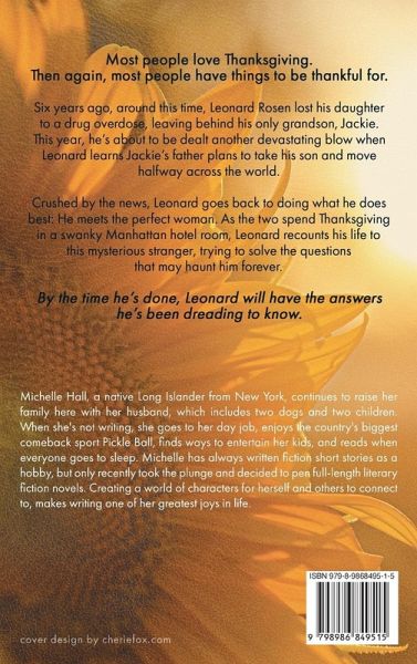 Most people love Thanksgiving. Then again, most people have things to be thankful for. Six years ago, around this time, Leonard Rosen lost his daughter to a drug overdose, leaving behind his only grandson, Jackie.This year, he's about to be dealt another devastating blow when Leonard learns Jackie's father plans to take his son and move halfway across the world. Crushed by the news, Leonard goes back to doing what he does best: He meets the perfect woman. As the two spend Thanksgiving in a swanky Manhattan hotel room, Leonard recounts his life to this mysterious stranger, trying to solve the questions that may haunt him forever. By the time he's done, Leonard will have the answers he's been dreading to know.