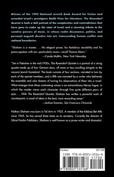 The Rosendorf Quartet is both a deft portrait of the complexities and contradictions that have gone to make up the state of Israel and a stunning tribute to the curative powers of music, in whose realm dissonance, politics, and personal anguish dissolve into art, transcending human conflict and national boundaries.