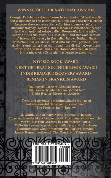 Winner of the Next Generation Indie Book Award (2021), Indie Reader Discovery Award (2021), and the Silver Benjamin Franklin Award (2021) Georgia Pritchard's dream house has a dead child in the attic and a monster in the basement, but she can't tell her husband because she's not sure it's really him anymore. "An unsettling psychological terror...This is exactly what horror should be." -Indie Reader Discovery Awards 2021 "Dark and absolutely riveting...flawlessly paced and suspenseful. Roseneath is a winner." -The Prairies Book Review "A Gothic tale of horror with a touch of fantasy, Roseneath reads like a beloved book from your childhood that you've just rediscovered in your mother's attic. McSwain's prose is poetry, smooth jazz, and oftentimes charming even when describing the darkest terrors." -James Renner, author of The Man from Primrose Lane