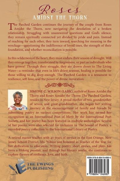 The Parched Garden continues the journey of the couple from Roses Amidst the Thorn, now navigating the desolation of a broken relationship. Struggling with unanswered questions and God's silence, they remain spiritually connected yet divided by pride and pain. Instead of reaching for each other, they turn inward, searching for meaning in the wreckage-questioning the indifference of loved ones, the strength of their foundation, and whether reconciliation is possible. In this wilderness of the heart, they must endure their season of drought. Will they emerge together, transformed by forgiveness, or part as individuals who have grown? Through their struggle, they are drawn closer to The Living Water-a reminder that even in life's driest seasons, healing is possible for those willing to dig deep enough. The Parched Garden is a testament to resilience, self-love, and the power of divine restoration.