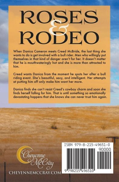 When Danica Cameron meets Creed McBride, the last thing she wants to do is get involved with a bull rider. Men who willingly put themselves in that kind of danger aren't for her. It doesn't matter that he is mouthwateringly hot and she is more than attracted to him. Creed wants Danica from the moment he spots her after a bull riding event. She's beautiful, sexy, and intelligent. Her attempts at putting him off only make him want her more. Danica finds she can't resist Creed's cowboy charm and soon she finds herself falling for him. That is until something so emotionally devastating happens that she knows she can never trust him again.