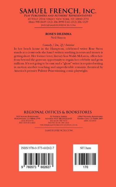 Full Length, Comedy Characters: 2 male, 2 female Interior Set In her beach house in the Hamptons, celebrated writer Rose Stern stands at a crossroads: she hasn't written anything in years and money is getting short. Her former lover, literary lion Walsh McLaren, offers her-from beyond the grave-an opportunity to regain her celebrity and gross millions. It's not going to be easy and a "ghost" writer is required setting in motion another touching and unpredictable romantic theatrical by America's premier Pulitzer Prize-winning comic playwright.