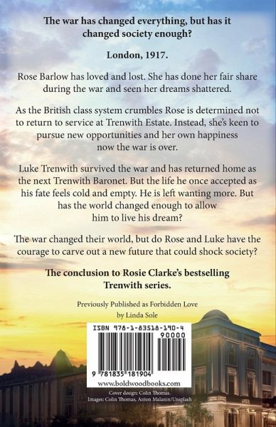 The final breathtaking part on The Trenwith Trilogy from Rosie Clarke The war has changed everything, but has it changed society enough? London, 1917. Rose Barlow has loved and lost. She has done her fair share during the war and seen her dreams shattered. As the British class system crumbles Rose is determined not to return to service at Trenwith Estate instead, she's keen to pursue new opportunities and her own happiness now the war is over. Luke Trenwith survived the war and has returned home as the next Trenwith Baronet. But the life he once accepted as his fate feels cold and empty. He is left wanting more. But has the world changed enough to allow him to live his dream? The war changed their world, but do Rose and Luke have the courage to carve out a new future that could shock society? If you love this, have you tried Rosie Clarke's Mulberry Lane, Blackberry Farm, Dressmakers Alley and Harper's series? Previously Published as Forbidden Love by Linda Sole Praise for The Trenwith Series: 'Rosie Clarke has written another quality historical fiction novel, she is an author whose books I will always want to read' - Beyond The Books 'Rosie Clark is such a brilliant writer. It takes no time at all to imagine the characters and surroundings and be totally immersed. If only there were 2 of you and you could write twice as many' - Reader Review 'Superb histoircal fiction - I am a huge fan of Rosie Clarke and her work. I can honestly say that there is not one single book of hers that I haven't enjoyed' - Ginger Book Geek 'Lovely book to read, I didn't want to put it down.' - Reader Review 'Brilliant book, absolutely compelling. Love Rosie Clarke's books and this is no exception. Beautifully written and difficult to put down' - Reader Review 'Count on Rosie Clarke to take you away from all the craziness in the world right now and give you a lovely story with a happy ending. I wish the next book in this trilogy was ready to be released!' - Reader Review