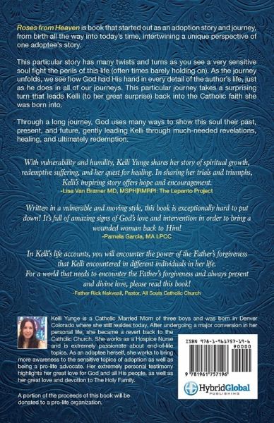 Roses from Heaven is a book that starts out as an adoption story and turns into a spiritual journey, from birth all the way into today's time, intertwining a unique perspective of one adoptees story (including the searching and discovery of birth parents and siblings) with God's hand in her life's path. This particular story has many twists and turns as you see a very sensitive soul fight the perils of this life (often times barely holding on while fighting real battles with depression and sometimes bouts of feeling suicidal) while struggling with alcoholism, identity/abandonment issues, and Post-Traumatic Stress Disorder. Kelli candidly shares her experience as a single mom and her struggles to become a hospice nurse, a career she is passionate about. She recounts several death bed conversions during the course of caring for her patients. As the journey unfolds, we see how God had his hand in every minute detail, just as he does in all our journeys, and this particular one takes a turn that leads the author (to her great surprise) back into the Catholic faith she was born into. Not only back into the Catholic faith, but through a long exploration where God shows a soul their past, present, and future in many ways. He gently leads this soul through an extremely personal and intimate relationship that is formed first with The Blessed Mother Mary, and then eventually including the entire Holy Family. God gently shepherds Kelli through much-needed revelations, healing, and ultimately redemption. In the pages of this book, Kelli shares her personal journey of repentance, regret, and a most miraculous healing after attending a Rachel's Vineyard retreat for post-abortive healing. This is an inspiring testimony of what God can accomplish in the life of a soul that is fully committed to Him. This is a story of the miraculous Roses from Heaven and how God saved one woman's life in every way a person can be saved.