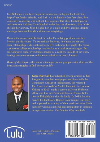Eve Williams is ready to begin her senior year in high school with the help of her family, friends, and faith. As she heads to her first class, Eve is already wondering who will ask her to prom. But when football player and notorious bad boy Ryan Mitchell walks into the classroom, Eve thinks she has her answer. Soon he asks her on a date and Eve accepts, despite warnings from her friends and her own misgivings. Ryan is the mastermind behind the school's bullying problem and her friends are his victims. To exacerbate the issue, he cheats on her and their relationship ends. Disheartened, Eve embraces her single life, earns a generous college scholarship, and works as a retail store manager. But on Halloween night, everything changes as a robbery unfolds at the store, leaving Eve unconscious and a secret admirer to reveal himself. Roses of the Angel is the tale of a teenager as she grapples with affairs of the heart and struggles to find her way in life.